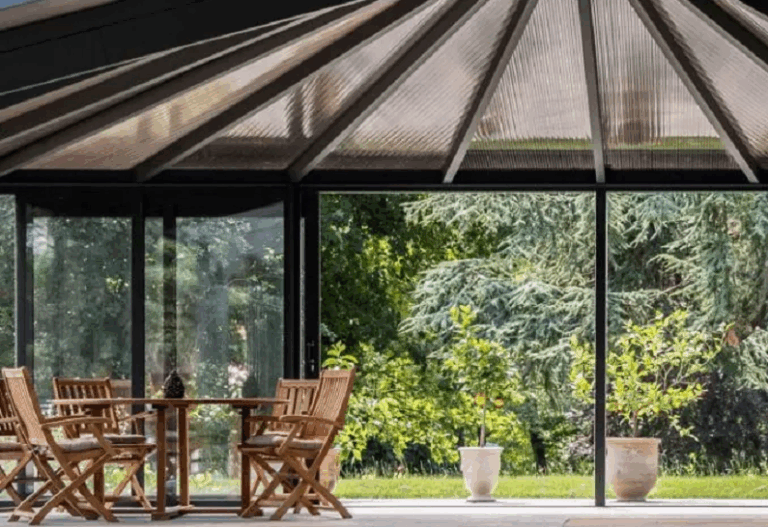 10 mm Doppelstegplatten sind ideal für Terrassendächer, Carports, Pergolen und Gewächshäuser. Sie bieten eine gute Balance zwischen Stabilität und Lichtdurchlässigkeit.