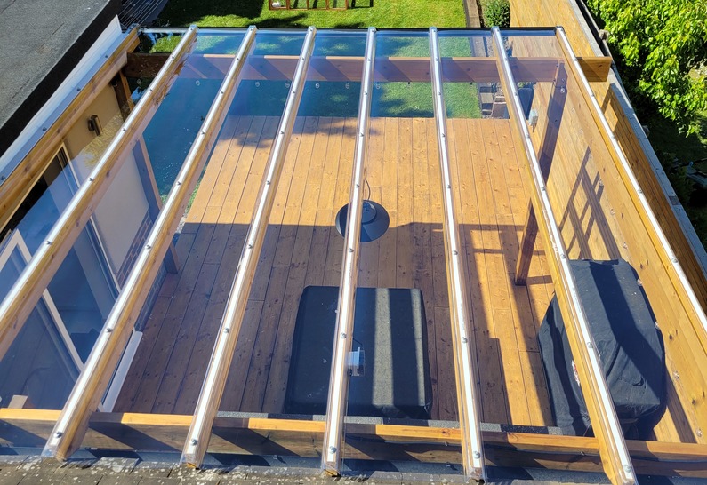 Mit ihrer klaren und lichtstarken Optik ist die Polycarbonat Lichtplatte EZ-GLAZE klar ideal für lichtdurchflutete Überdachungsprojekte. Zu den typischen Anwendungen gehören Terrassenüberdachungen, Pergolen, Carports, Wintergärten, überdachte Wege sowie transparente Leichtbaukonstruktionen mit hoher Lichtausbeute. Durch die hohe Transparenz wirkt die Überdachung besonders offen und freundlich.