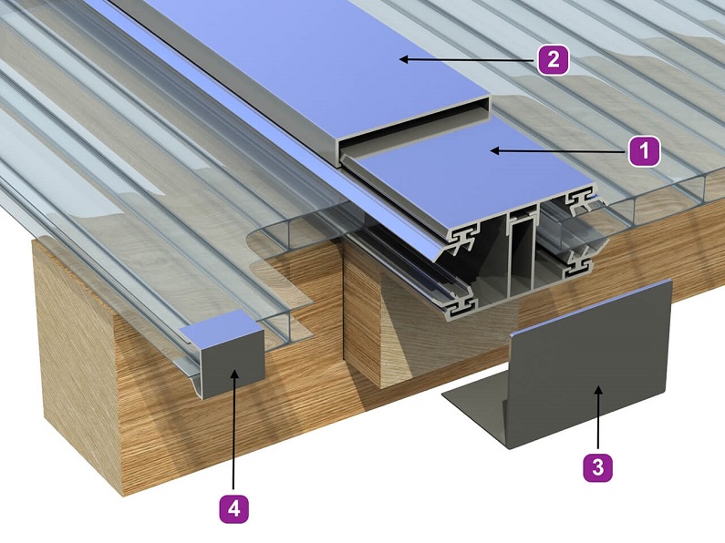 Die Stegplatten werden an den oberen Stirnseiten mit dem Abschlussprofil verschlossen, um das Verschmutzen der Hohlkammern durch Algen- und Moosbildung zu verhindern.