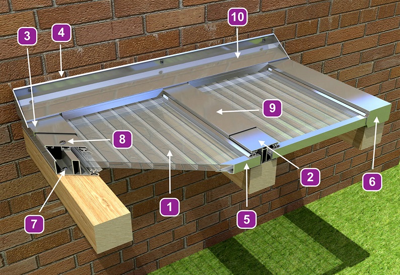 Die Unterkonstruktion sollte verwindungsarm sein (bei Holzkonstruktionen Leimbinder verwenden). Außerdem ist zwischen den Platten und den Querunterstützungen ein Abstand von mind. 10 mm einzuhalten. Um ein streifenweises Aufheizen der Stegplatten zu vermeiden, sind die den Stegplatten zugeneigten Flächen (Oberflächen der Unterkonstruktion, Abdeckungen) reflektierend mit Aluminium- Klebeband anzulegen. Der Anstrich der Unterkonstruktion muss vor dem Verlegen der Platten ablüften/trocknen. Weich-PVC, Insektensprays und lösungsmittelhaltige Farben dürfen nicht in der Nähe von Stegplatten verarbeitet werden (chemische Unverträglichkeit). Ferner sollten Dämmstoffe, Verschalungen und Schaumstoffe nicht in unmittelbarem Kontakt zur Bedachung angebracht werden. Innenrollos sollten auf der Oberseite weiß oder silber sein und mindestens 12 cm Plattenabstand haben. Bei Nichtbeachtung o. g. Hinweise besteht die Gefahr von Rissbildung, Verformung und Verfärbung!