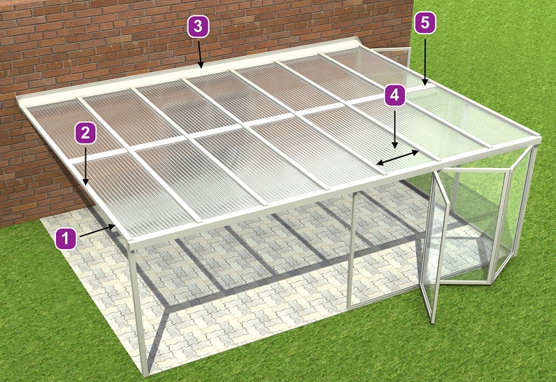 Stegplatten dehnen sich bei Feuchtigkeit und Wärme aus. Je m Plattenlänge sollte mit ca. 6 mm gerechnet werden. Richtung Mauerwerk muss die Längsausdehnung berücksichtigt werden und über das Alu-Wandanschlussprofil überdeckt werden. Bei Verwendung von Verbindungsprofilen gilt für den Sparrenabstand die Faustregel: Sparrenabstand = Plattenbreite + 25 mm. Diese Angabe beinhaltet das notwendige Dehnungsspiel in der Breite.